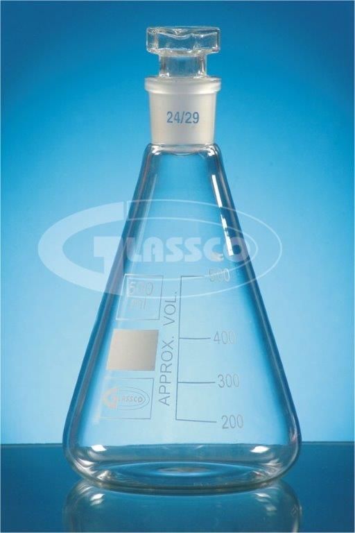 Erlenmeyers x 500 ml con boca y tapa esmerilada 24/40